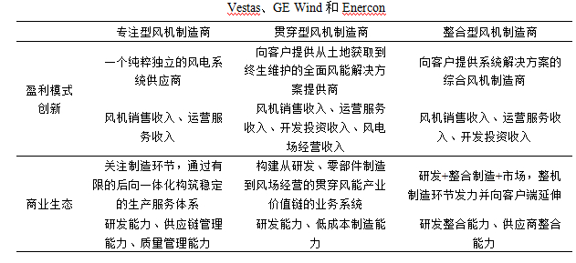 盈利模式創(chuàng)新一個純粹獨立的風(fēng)電系統(tǒng)供應(yīng)商向客戶提供從土地獲取到終生維護(hù)的全面風(fēng)能解決方案提供商向客戶提供系統(tǒng)解決方案的綜合風(fēng)機(jī)制造商