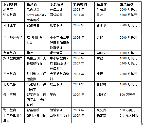 表1 2004-2009年教育培訓(xùn)市場部分投資案例