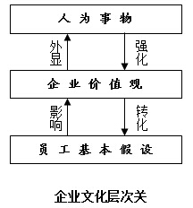 現(xiàn),企業(yè)文化的本質因素是存在于員工內心深處的基本假設,是基本假設決定了企業(yè)員工的行為。而目前公認的企業(yè)文化三層次中的理念層(以價值觀為中心),則是企業(yè)文化本質的表現(xiàn)形式。企業(yè)文化作為一種管理思想是要預防企業(yè)在運行中面臨的問題,弱化或消除企業(yè)運行中的障礙,減小管理中的不可預知性,也就是要最大可能地預測組織或個體行為以及行為所導致的最終結果。因此說,企業(yè)文化的核心是影響產生個體和組織行為的內在因素,即隱藏在個體和組織中的基本假設。
