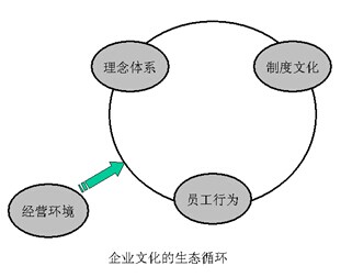 在企業(yè)文化實(shí)踐的過程中,企業(yè)文化有這樣的一個內(nèi)部循環(huán)過程:在企業(yè)形成一個完整而又有層次的企業(yè)文化理念體系之后,這個理念體系又接著對企業(yè)的管理形成影響,即對企業(yè)的經(jīng)營策略、管理制度、激勵機(jī)制的制定與形成進(jìn)行指導(dǎo),而這種管理的實(shí)踐活動必將對企業(yè)員工的行為形成指導(dǎo)與約束;反過來,企業(yè)的經(jīng)營實(shí)踐與員工行為又會為企業(yè)文化的理念體系在不同經(jīng)營環(huán)境條件下的變革提供依據(jù)。