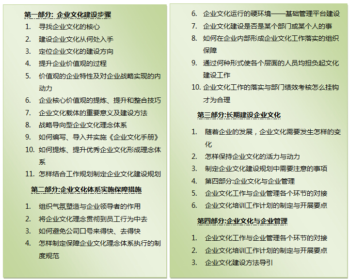 備注:(含講議費、資料費、企業(yè)文化系列圖書4本),食宿統(tǒng)一安排,費用自理。