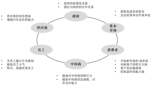 向供應商傳播使得供應商對企業(yè)的信任度高,從而增強企業(yè)討價還價的能力。建設優(yōu)勢集團品牌,能使集團從主要戰(zhàn)略利益相關者那里取得更大的支持和好處