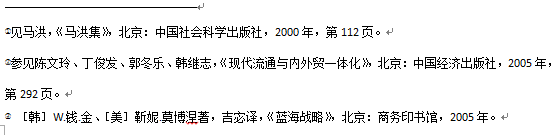 事實(shí)上,早在20世紀(jì)90年代初,就已經(jīng)有專家提出內(nèi)外貿(mào)一體化的思路。馬洪在1992年指出:“部門對市場的分割,在商品市場方面主要表現(xiàn)為內(nèi)貿(mào)與外貿(mào)分家,商業(yè)與物資分設(shè)。隨著近年來流通體制的改革,商業(yè)與物資相互分割和相互封鎖的狀況有了較大改變,但內(nèi)外貿(mào)分家的格局基本如舊。今后,要逐漸打破這種界限,通過試點(diǎn),建立起一批內(nèi)外貿(mào)兼營的大型流通企業(yè)。這樣做有利于把國內(nèi)市場和國際市場聯(lián)系起來,發(fā)揮兩類部門的綜合優(yōu)勢?!盵①]加入WTO后,內(nèi)外貿(mào)一體化更加迫切。陳文玲等人對中國內(nèi)外貿(mào)分割體制的弊端進(jìn)行了深入分析,認(rèn)為內(nèi)外貿(mào)的分割“認(rèn)為破壞了市場體系的競爭性、統(tǒng)一性和開放性,損害與扭曲了企業(yè)作為市場的主體地位,不利于流通企業(yè)做大做強(qiáng),不利于從整體上全面提高對外開放水平,嚴(yán)重影響了中國流通業(yè)促進(jìn)生產(chǎn)、引導(dǎo)消費(fèi)作用的發(fā)揮,不利于節(jié)約流通費(fèi)用,提高國民經(jīng)濟(jì)的綜合效率”。[②]
