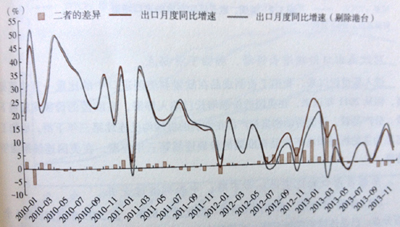 圖5.1 我國出口月度同比增速(2010年1月~2013年12月)