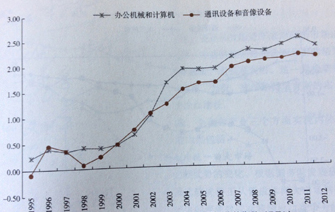 圖5.10 中國辦公機(jī)械和通訊設(shè)備的顯性貿(mào)易優(yōu)勢指數(shù)(RTA)