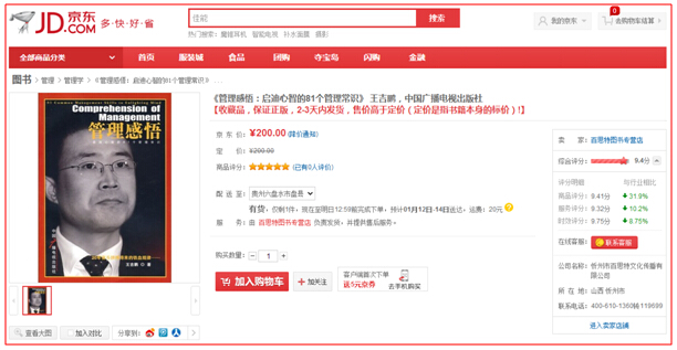 在網(wǎng)上書店搜索先生的書,發(fā)現(xiàn)他經(jīng)理人系列著作2007年出版的《管理感悟—啟迪心智的81個(gè)管理常識》都顯示斷貨,唯京東商城上有個(gè)舊書商在賣,也僅有一本售價(jià)高達(dá)200元,可書的原價(jià)是20元啊!我很憤慨,跟先生抱怨,先生說給我地址送你一本。給了地址的隔一天中午,順豐速運(yùn)的快遞小哥打電話說有從海淀區(qū)北洼西里給我寄來的書,那種陽光中快樂地跑去取書的感覺太好了,記憶深刻。