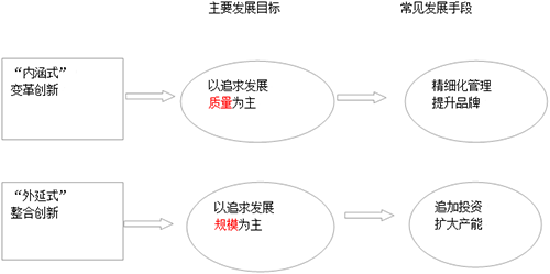 圖19-1 “內(nèi)涵式”變革創(chuàng)新模式和“外延式”整合創(chuàng)新模式