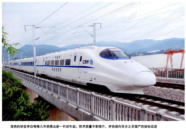 20世紀90年代末,中國開始引進高鐵技術,吸收了國際上所有成熟的高鐵技術,當時引進了日本川崎重工、法國阿爾斯通、德國西門子、加拿大龐巴迪等產(chǎn)品技術。經(jīng)過十多年消化整理,中國開始向統(tǒng)一的技術標準和自主研發(fā)體系邁進。由于龐大的經(jīng)濟規(guī)模與地理幅員,讓中國在高速鐵路領域的技術享有世界上其他國家沒有的優(yōu)勢。高鐵的研發(fā)單位每隔幾年就推出新一代動車組,技術質量不斷提升,并快速向百分之百國產(chǎn)的目標邁進。中國幅員遼闊,地理、氣候條件復雜,例如東北的高寒地帶、新疆的沙漠地帶運行的防風沙動車,國外都沒有嘗試過。由此中國積累了很多技術,營運與維修的經(jīng)驗。這些是德國、日本或法國無法相比的。這就是典型的蛙跳式技術更新。