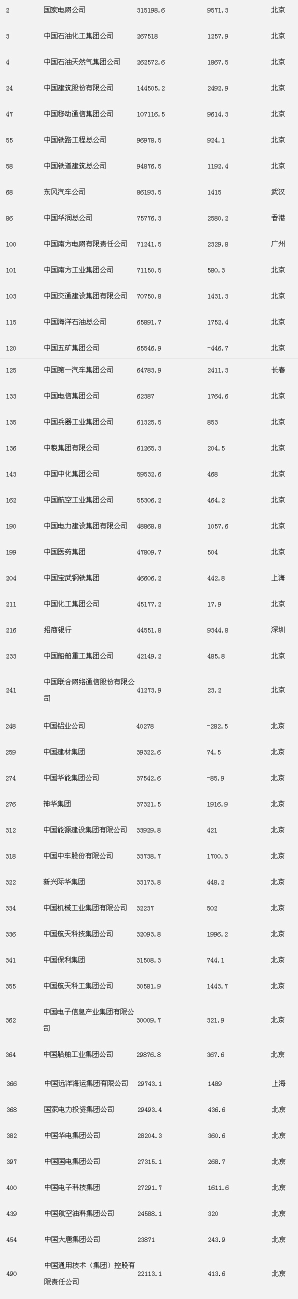 值得注意的是,其中國(guó)資委監(jiān)管的中央企業(yè)有48家入圍,將近大陸企業(yè)總數(shù)的一半,其中大部分都是仁達(dá)方略客戶。下為2017《財(cái)富》世界500強(qiáng)中央企業(yè)上榜名單,橫軸信息為五百?gòu)?qiáng)排名、企業(yè)名稱、營(yíng)業(yè)收入(百萬美元)、利潤(rùn)(百萬美元)、總部。