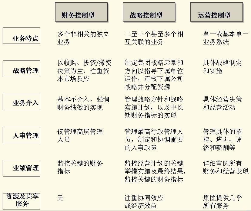【本文導讀】一般而言,集團總部對下屬企業(yè)的管控模式,按總部集、分權程度不同劃分為:運營控制型、戰(zhàn)略控制型和財務控制型三種管控模式。