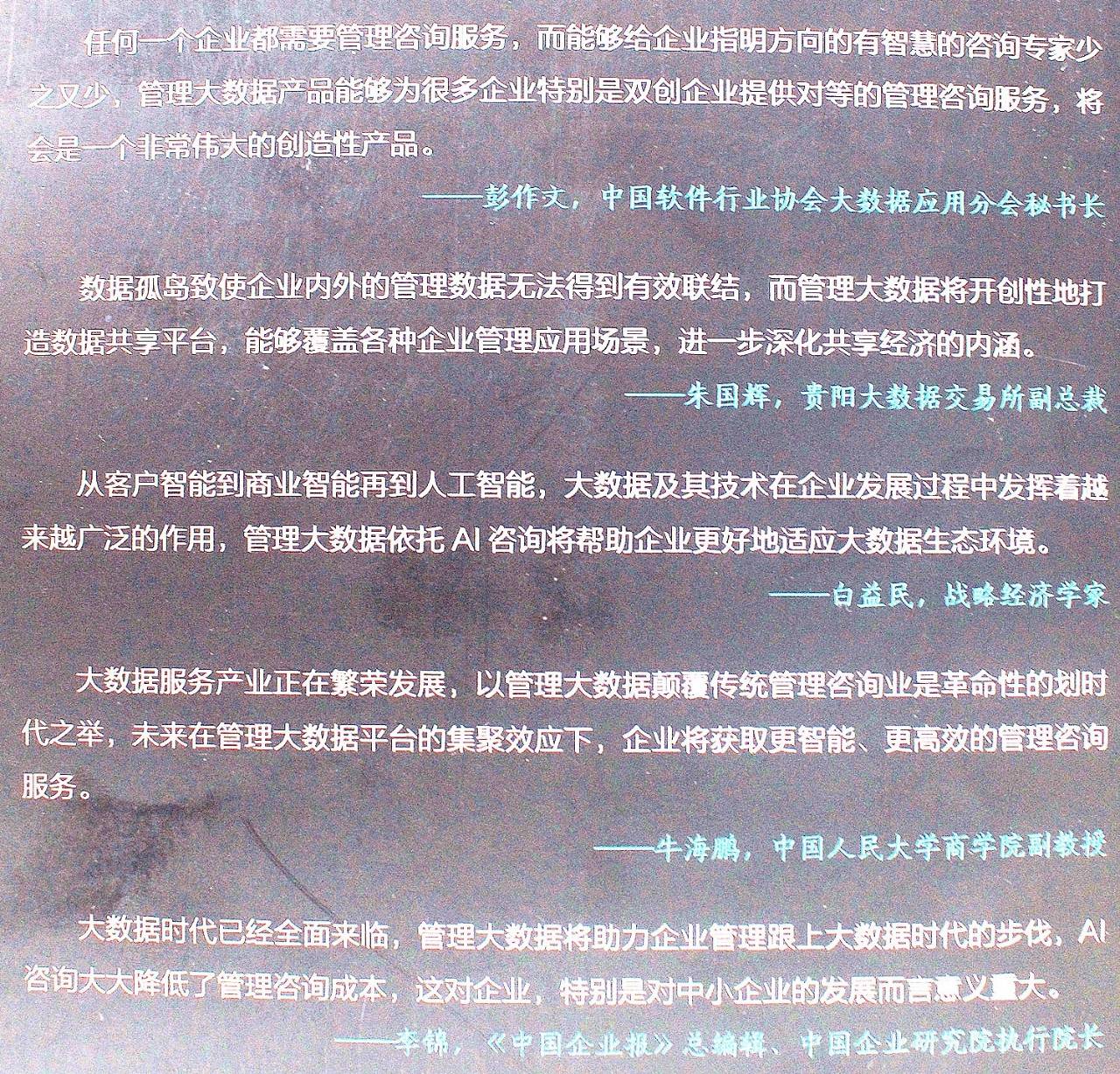 以下是彭作文先生為《管理大數(shù)據(jù)RBD:從CI、BI到AI》所作序文的主要內(nèi)容: