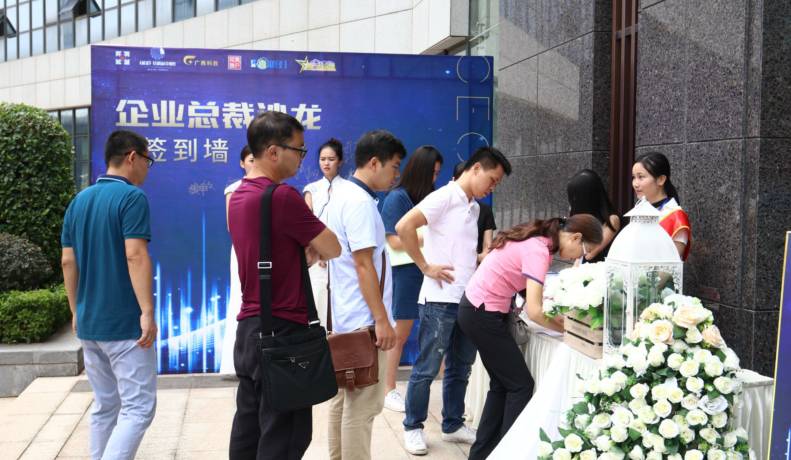 (簽到處排隊(duì)等待的企業(yè)中高層們)