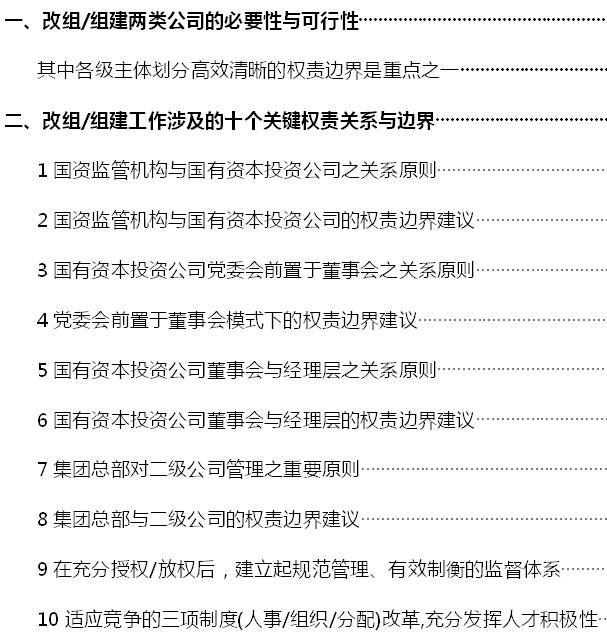 主題:改組/組建國(guó)有資本投資和運(yùn)營(yíng)公司(兩類(lèi)公司)工作中關(guān)鍵環(huán)節(jié)研究——十個(gè)重要權(quán)責(zé)關(guān)系與邊界劃分