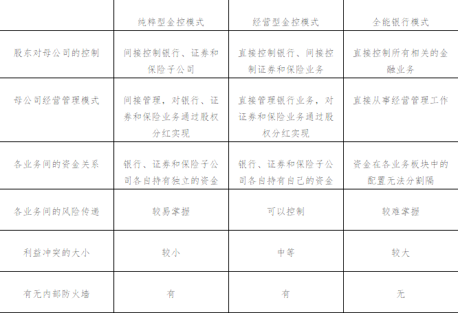 三種主流金控模式經(jīng)營(yíng)特點(diǎn)比較: