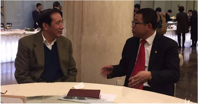 仁達方略董事長王吉鵬與北大光華管理學院教授張國有交談
