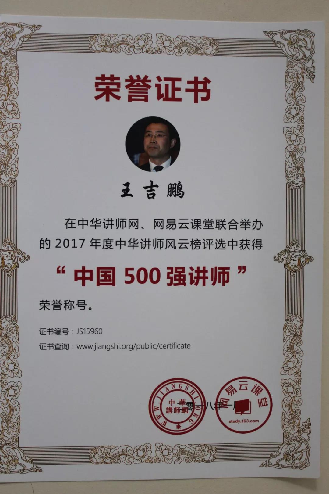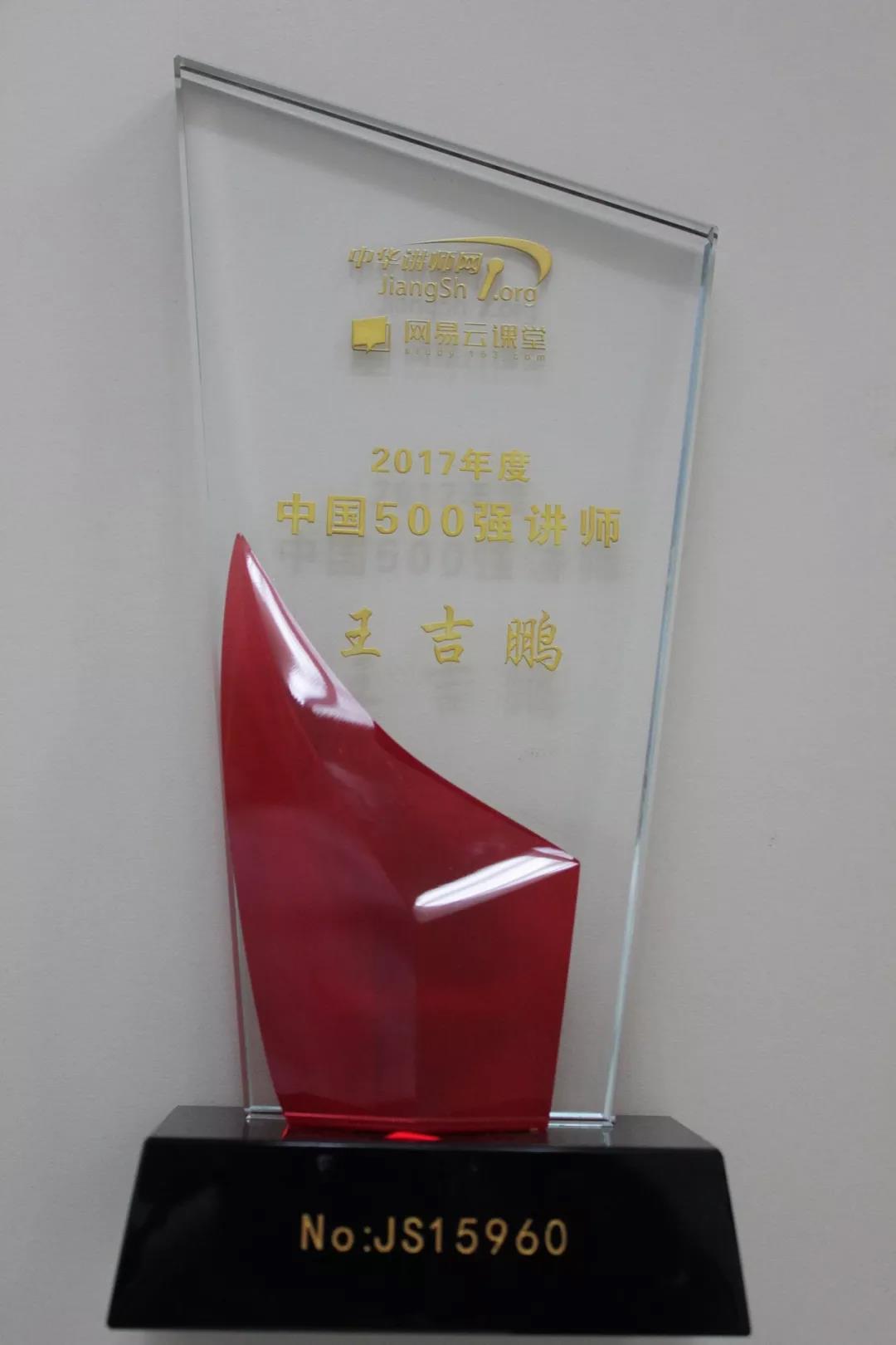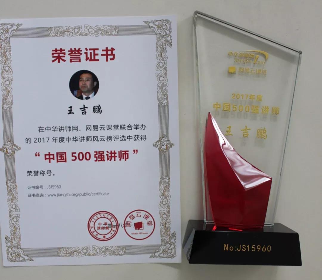 王吉鵬老師榮獲“中國(guó)500強(qiáng)講師” 榮譽(yù)稱號(hào)