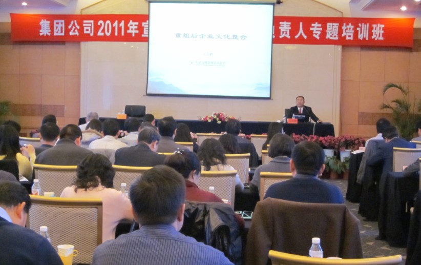 中國(guó)兵器工業(yè)集團(tuán)公司總部領(lǐng)導(dǎo)及各子集團(tuán)宣傳黨群部負(fù)責(zé)人60余人參加此次培訓(xùn)。王吉鵬董事長(zhǎng)授課方式風(fēng)趣幽默、旁征博引,內(nèi)容實(shí)證實(shí)用,針對(duì)兵器工業(yè)集團(tuán)以及子集團(tuán)存在的文化整合問(wèn)題進(jìn)行了系統(tǒng)的講授,為學(xué)員企業(yè)的企業(yè)文化整合提供了切實(shí)可行的方法與路徑。