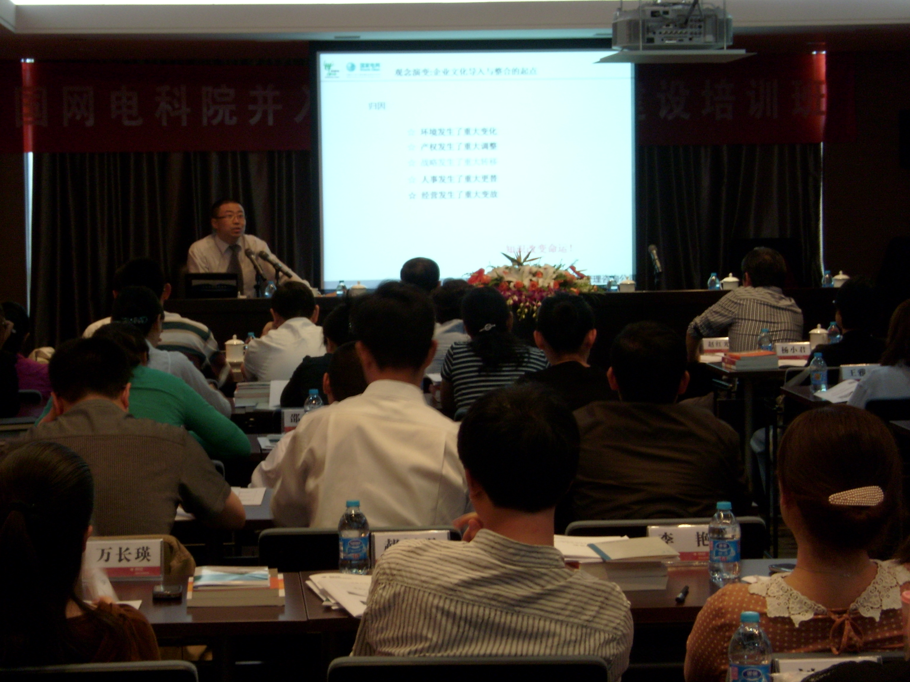 國網(wǎng)電科院總部領(lǐng)導(dǎo)及各分公司部長級以上人員60余人參加此次培訓(xùn)。王吉鵬董事長授課方式風(fēng)趣幽默、旁征博引,內(nèi)容實(shí)證實(shí)用,針對國網(wǎng)電科院存在的文化整合問題進(jìn)行了系統(tǒng)的講授,為國網(wǎng)電科院的企業(yè)文化整合提供了切實(shí)可行的方法與路徑。