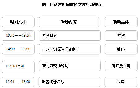 仁達(dá)方略周末商學(xué)院的活動(dòng)流程如下圖所示。