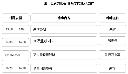 仁達(dá)方略企業(yè)商學(xué)院的活動(dòng)流程如下圖所示。