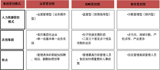 根據(jù)對(duì)我國(guó)人力資源管控現(xiàn)狀的總結(jié),認(rèn)為兼并重組后的集團(tuán)化企業(yè)有三種人力資源管控模式:運(yùn)營(yíng)管控型、戰(zhàn)略管控型、財(cái)務(wù)管控型。具體如下圖所示。