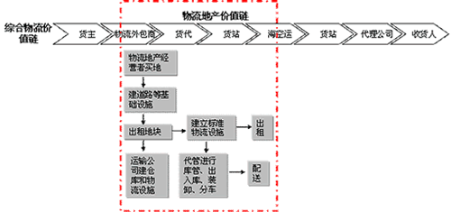 此外,物流地產(chǎn)作為綜合物流價值鏈上的重要一環(huán),成為獨立于綜合物流價值鏈的一個垂直價值鏈。如圖1所示。所謂“物流地產(chǎn)”,就是指房地產(chǎn)商根據(jù)顧客的需求,選擇合適的地點,建成相關物流設施后,再轉租給客戶,比如制造商、零售商、物流公司等,之后,再組建一個資產(chǎn)管理隊伍進行物業(yè)管理和服務,其本質(zhì)是物流服務和地產(chǎn)服務一體化結合的產(chǎn)物。