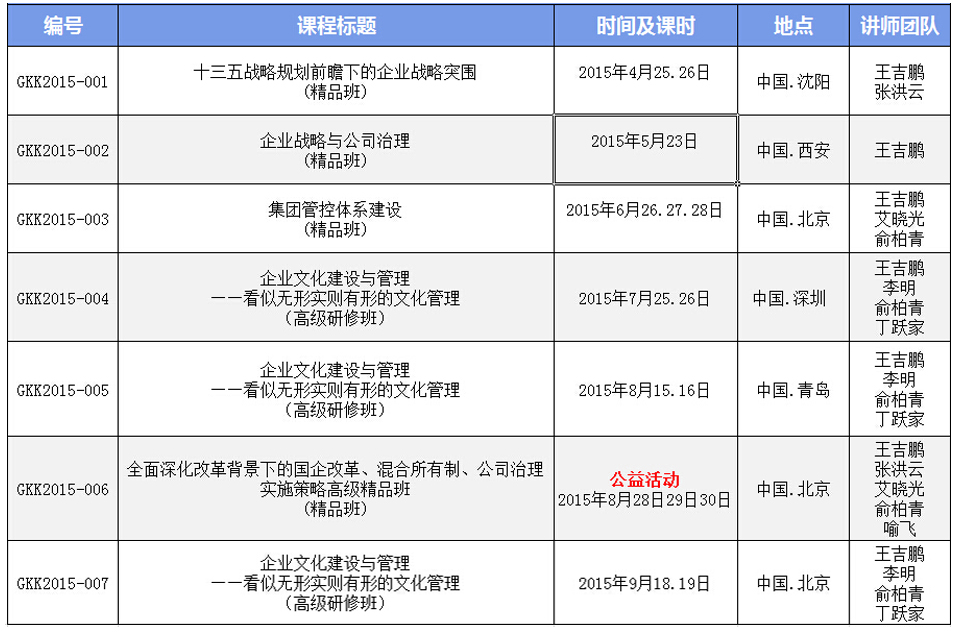 4.     講師團隊優(yōu)勢,由國內(nèi)知名集團管控、戰(zhàn)略、品牌、文化專家;國務(wù)院及地方國資委、證監(jiān)會特聘講師主講;