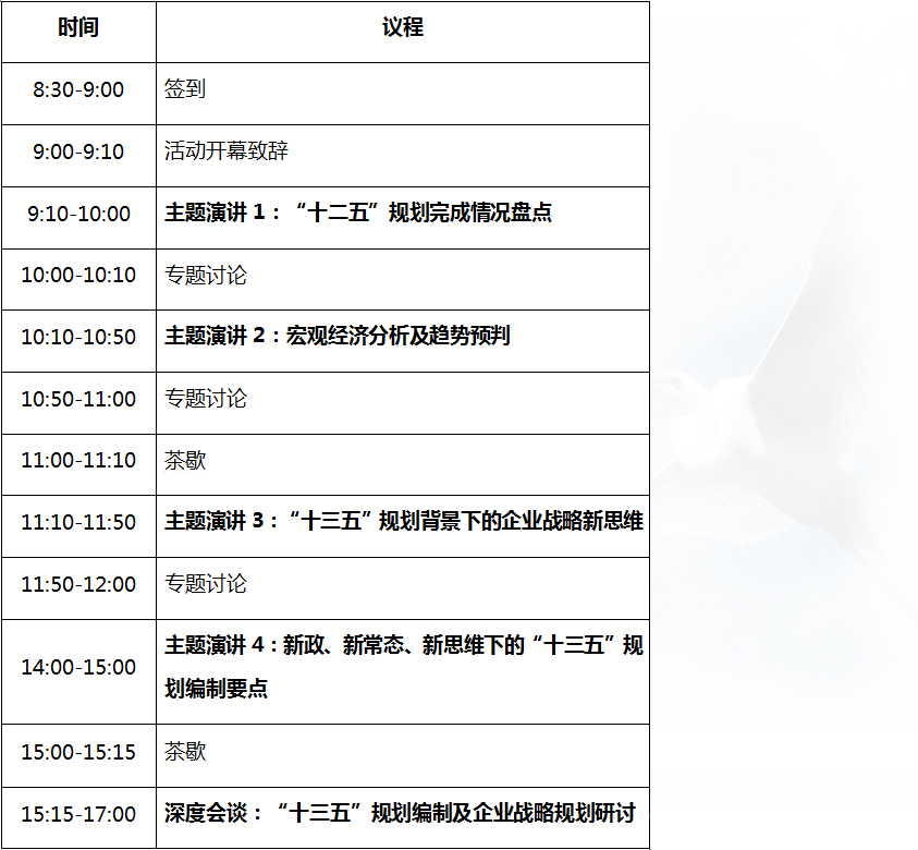 主題演講與深度會談相結(jié)合,幫助企業(yè)了解“十三五”規(guī)劃編制要點(diǎn)、流程和基本思路,解決在編制過程中遇到的實(shí)際問題;