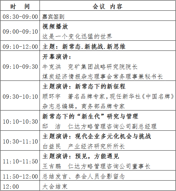 您好!為了深入了解企業(yè)改革發(fā)展、探討當(dāng)前焦點(diǎn)問題、交流經(jīng)驗(yàn)、仁達(dá)方略管理咨詢公司將于2015年1月30日在北京舉辦“2015年新常態(tài)下的管理創(chuàng)新高峰論壇”,會(huì)議將邀請政府代表、權(quán)威專家、優(yōu)秀企業(yè)代表、投資機(jī)構(gòu)以及媒體等匯聚一堂,以“新常態(tài)、新挑戰(zhàn)、新思維”為主題,共同探討在全面深化改革及“新常態(tài)”的形勢下,中國企業(yè)該如何轉(zhuǎn)型、創(chuàng)新的長遠(yuǎn)戰(zhàn)略。