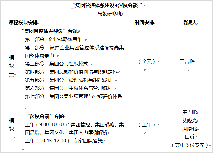 備注:根據(jù)課程內(nèi)容及學(xué)員需求,安排其中3位專家進(jìn)行會談。